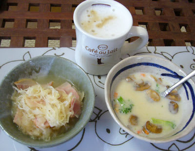 カフェに行くのはやめてお家で朝ご飯。