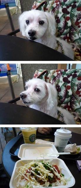 2010-10-28 ある日のスタバ ブラ王の日常とか、お友達わんこ ちょっと前の写真ですが 最近王子の様子をUPしていないので。。。 今年の王子は小康状態を保ってくれていて 穏やかに過ごせています。 去年、一昨年と10月は大学病院でいろいろあったもんね。。。。 この日のスタバテラスは、沖縄フェアにかなり占領させてました。笑 タコス&タコライス好きのJの為にオットがタコライスを買ってくれましたが。。。。 これで600円は高いよな~。