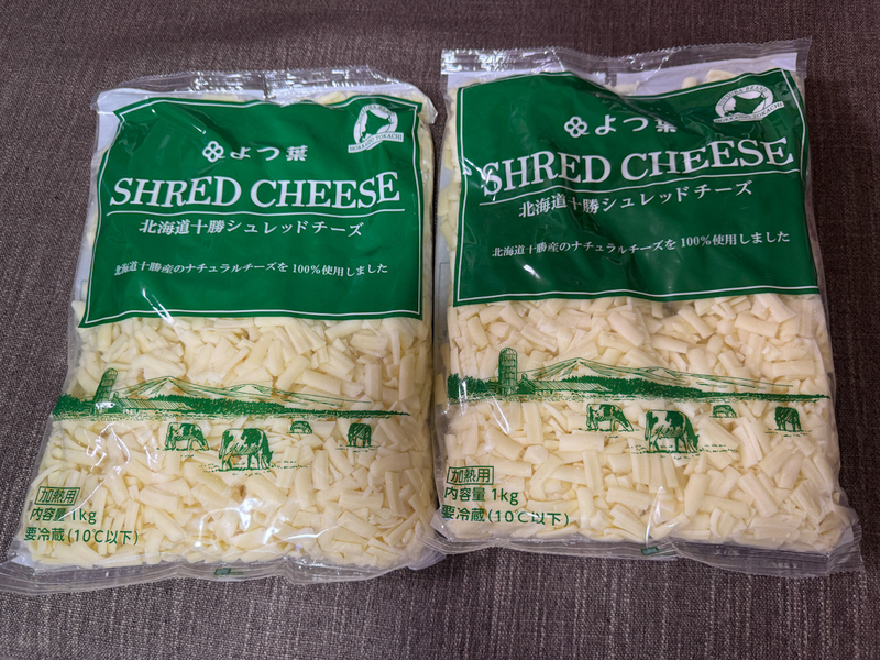 計2㎏のシュレッドチーズ。賞味期限は2か月。